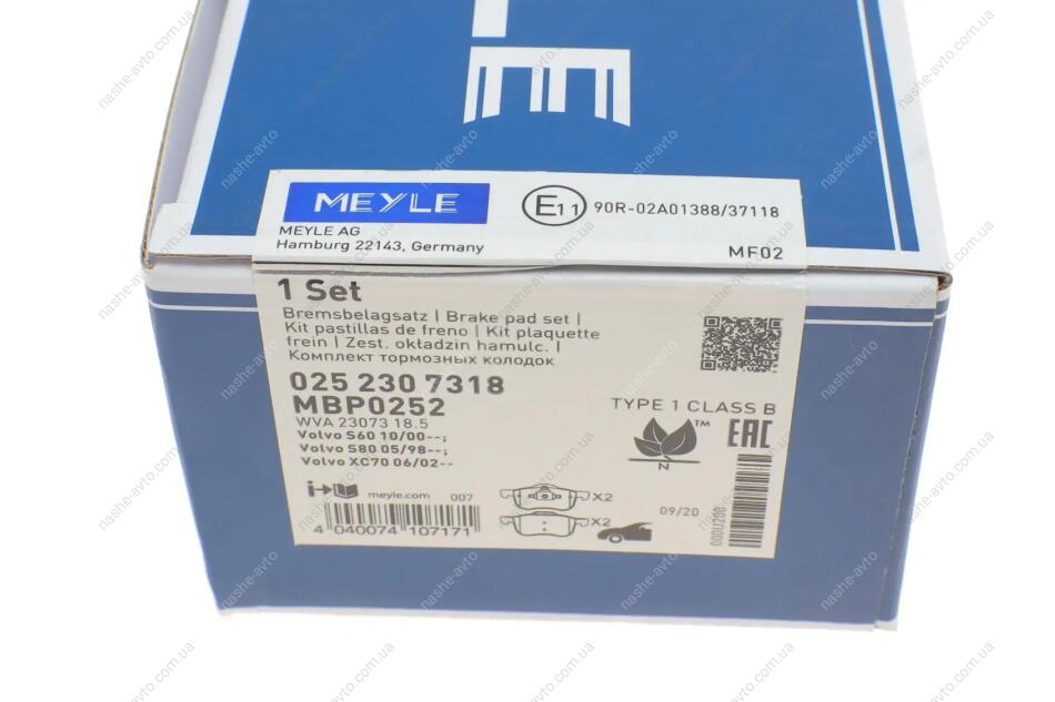 Комплект гальмівних колодок MEYLE 025 230 7318