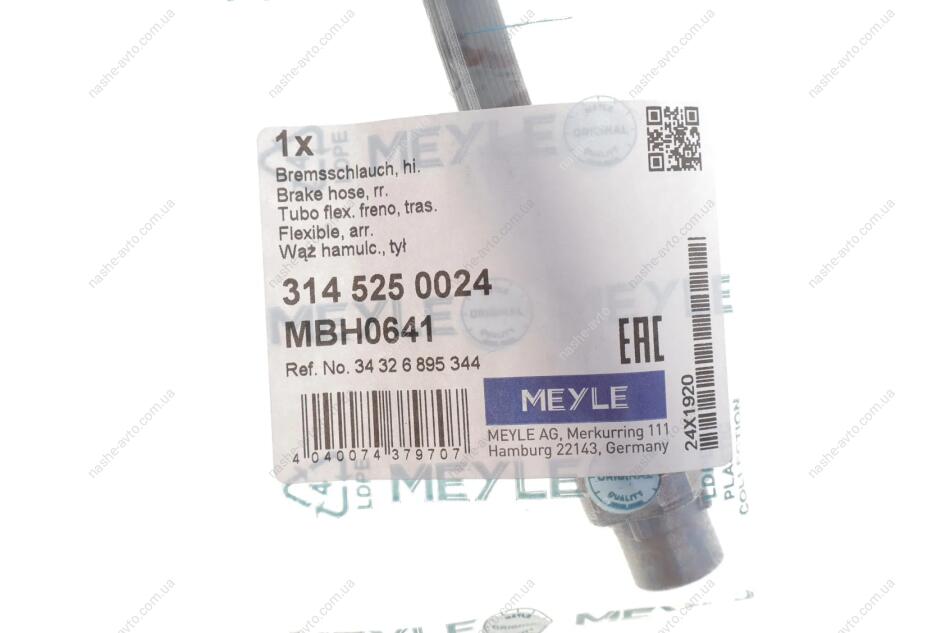 Шланг гальмівний MEYLE 314 525 0024