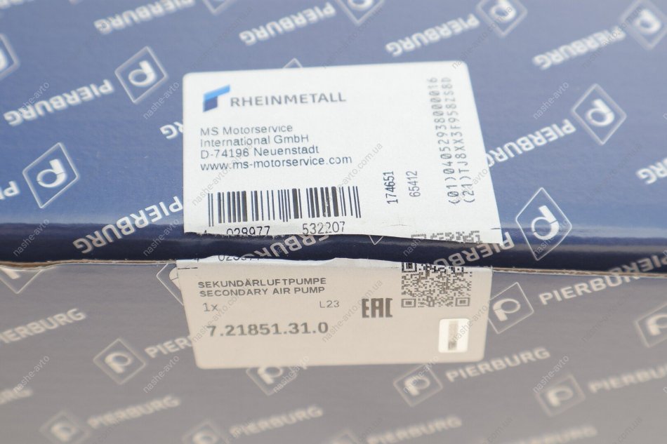 Pierburg — известный немецкий бренд, специализирующийся на производстве компонентов для подачи воздуха и топлива, систем рециркуляции отработанных газов, электрических насосов, клапанов и дроссельных узлов. Основан в 1909 году и входит в состав Rheinmetall Automotive. Pierburg поставляет оригинальные комплектующие на сборочные конвейеры ведущих автоконцернов, а также на вторичный рынок. Изделия бренда отличаются высокой надёжностью и соответствием требованиям современных экологических стандартов.