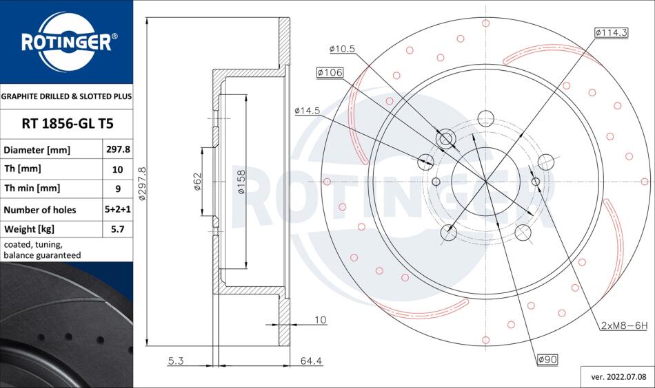 Диск тормозной задний (кратно 2) TOYOTA VENZA (08-16) [298X70 перфорир.] (RT1856 ROTINGER RT1856GLT5