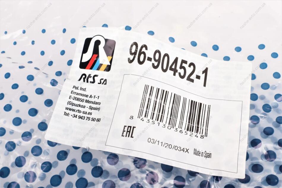 RTS — испанская компания, на протяжении более 35 лет производит рулевые и подвесочные запчасти для легкового и коммерческого транспорта. Продукция изготавливается на собственных заводах в Европе по стандартам OE, с регулярным внедрением инноваций и строгим контролем качества. Компания ежегодно выпускает более 500 новых изделий, а общий объём производства превышает 10 миллионов деталей. RTS поставляет товары в более чем 75 стран, обеспечивая сертификацию по ISO 9001, ISO 14001 и EAC.