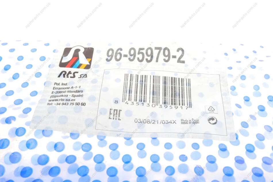 RTS — испанская компания, на протяжении более 35 лет производит рулевые и подвесочные запчасти для легкового и коммерческого транспорта. Продукция изготавливается на собственных заводах в Европе по стандартам OE, с регулярным внедрением инноваций и строгим контролем качества. Компания ежегодно выпускает более 500 новых изделий, а общий объём производства превышает 10 миллионов деталей. RTS поставляет товары в более чем 75 стран, обеспечивая сертификацию по ISO 9001, ISO 14001 и EAC.
