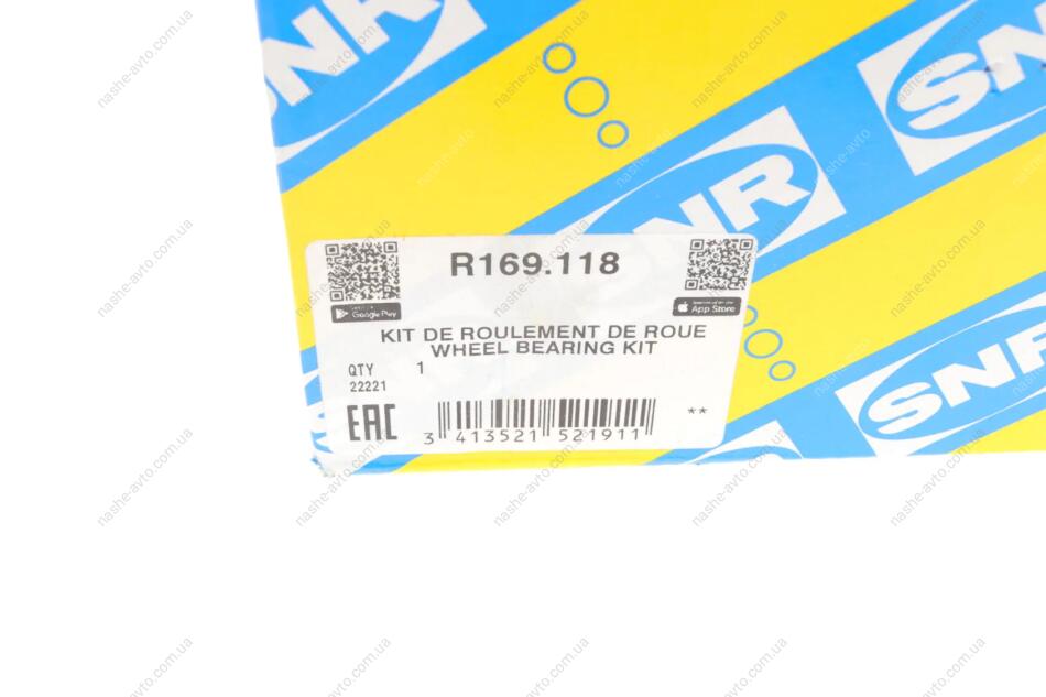 Підшипник призначений для монтажу на маточину, з елементами монтажу SNR R169.118