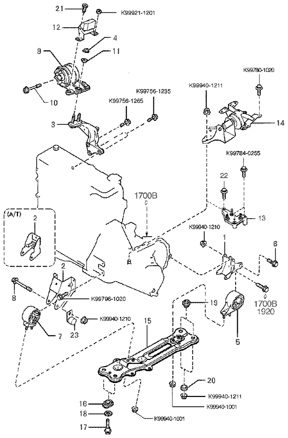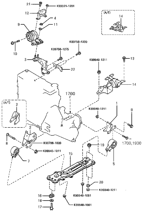 (Рабочий объем двигателя: 1500 CC) Подвеска двигателя и трансмиссии (Рабочий объем двигателя: 1800 CC) |
