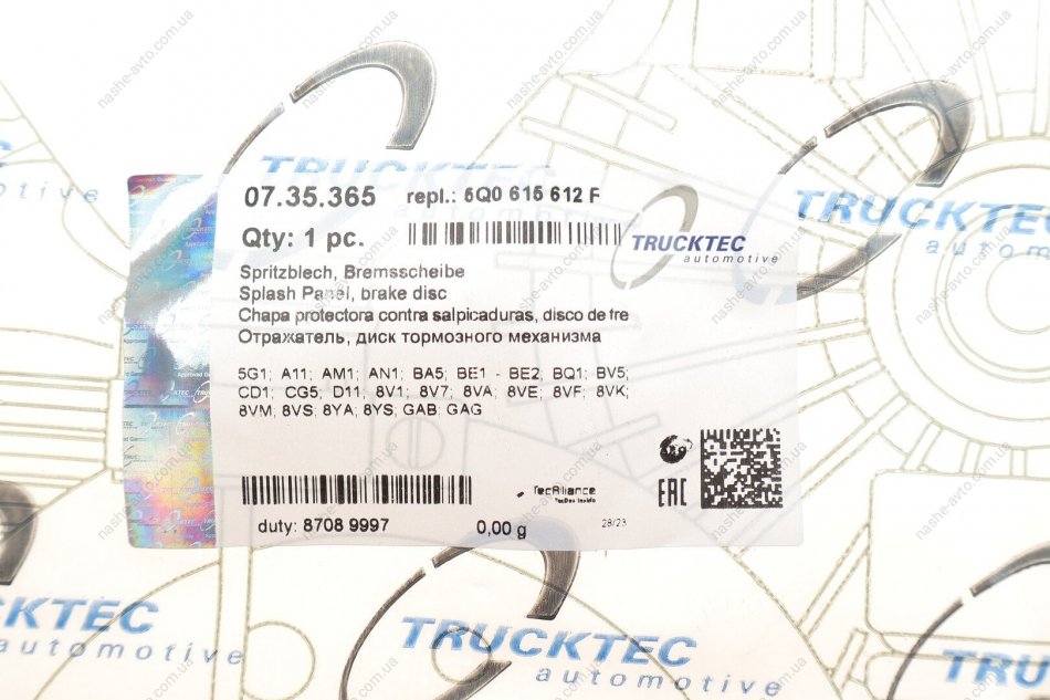 Захист гальмівного диска TRUCKTEC 07.35.365