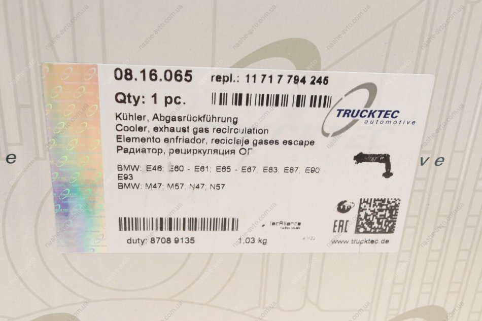 Радіатор відпрацьованих газів TRUCKTEC 08.16.065