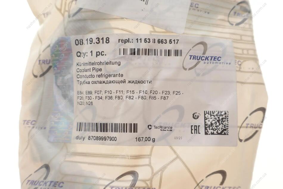 Трубопровід подачі охолоджувальної рідини TRUCKTEC 08.19.318
