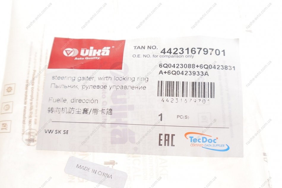 Пильник кермової рейки VIKA 44231679701