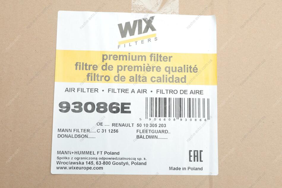 ФІЛЬТР ПОВІТРЯ WIX FILTERS 93086E