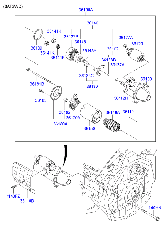 (Робочий об'єм двигуна: 2400 CC - THETA 2) стартер (02/02) (Робочий об'єм двигуна: 2400 CC - THETA 2) |