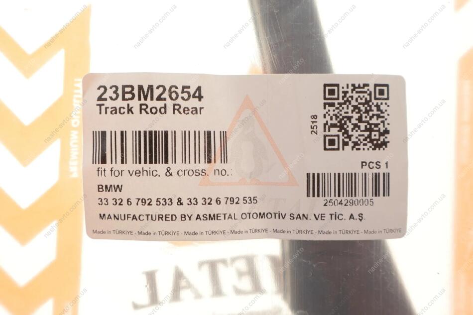 ASMETAL — відомий турецький бренд, що спеціалізується на виготовленні компонентів підвіски та рульового управління для легкових і комерційних авто. Продукція виробляється на власних заводах, сертифікована за ISO 9001 і TSE, відзначається надійністю та тривалим терміном служби. ASMETAL постачає товари як на внутрішній ринок Туреччини, так і до країн Європи й Азії, включно із співпрацею з Lemförder і Ruville.