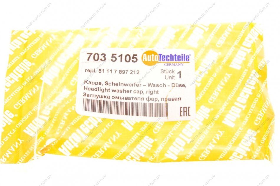 Заглушка омивача фар, права AUTOTECHTEILE 703 5105