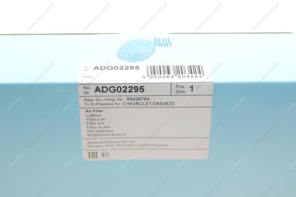 Фільтр повітряний BLUE PRINT ADG02295