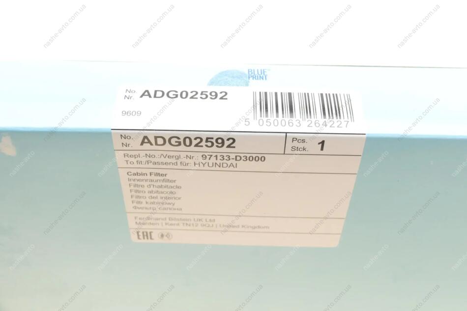 Повітряний фільтр салона BLUE PRINT ADG02592