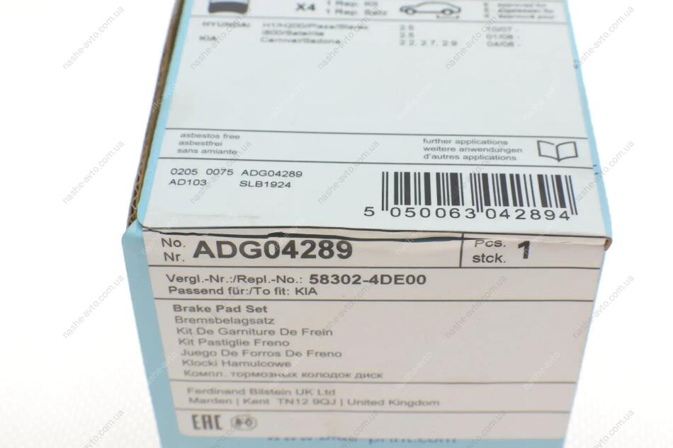 Комплект гальмівних колодок з 4 шт. дисків BLUE PRINT ADG04289