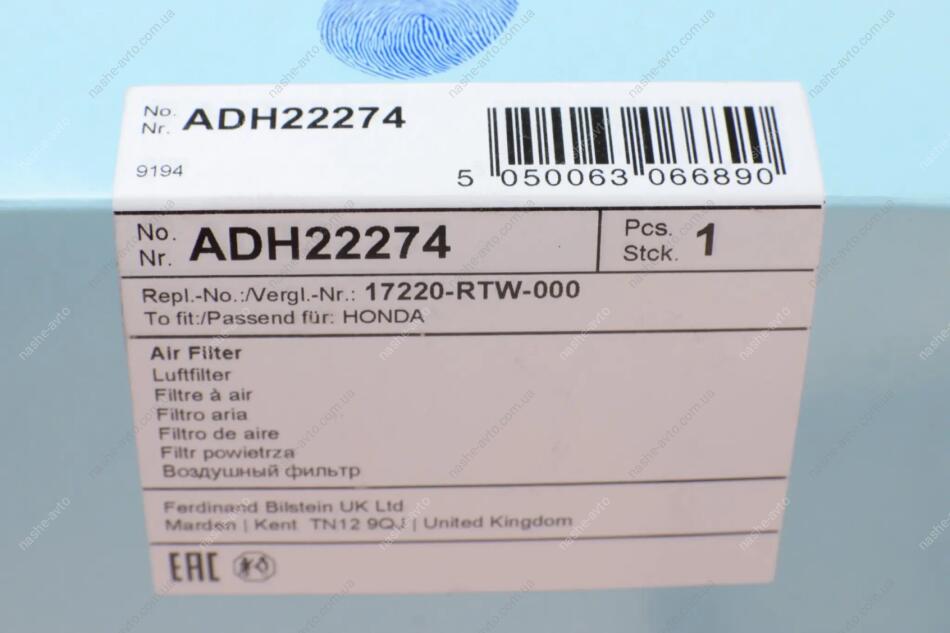 Фільтр повітряний BLUE PRINT ADH22274