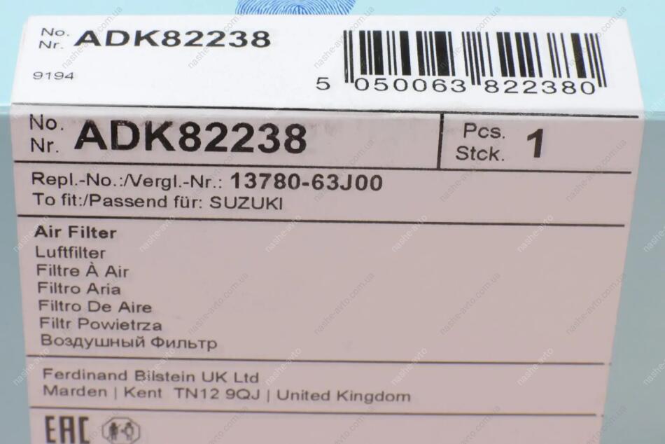 Фільтр повітряний BLUE PRINT ADK82238