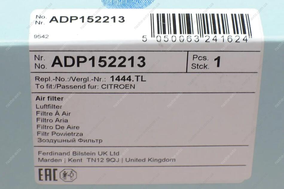 Фільтр повітряний BLUE PRINT ADP152213