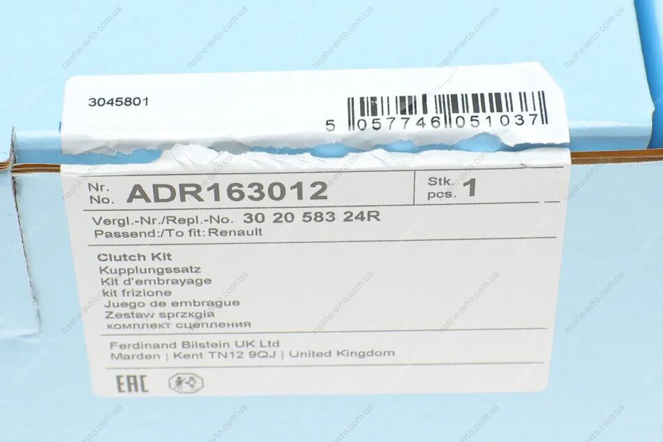 Ремонтний комплект зчеплення BLUE PRINT ADR163012
