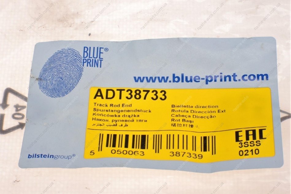 Наконечник рульової тяги з стопорною гайкою і шплінтом BLUE PRINT ADT38733