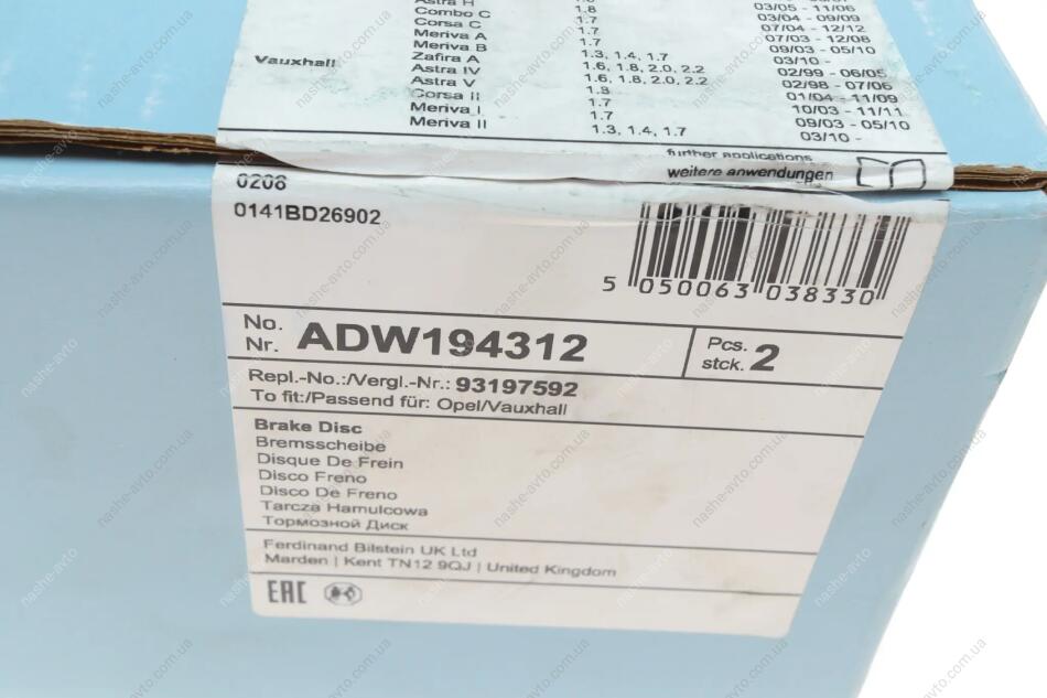 Диск гальмівний(к-т) BLUE PRINT ADW194312