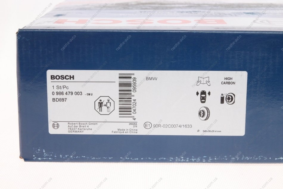 ДИСК ГАЛЬМIВНИЙ ПЕРЕДНIЙ BOSCH 0 986 479 003