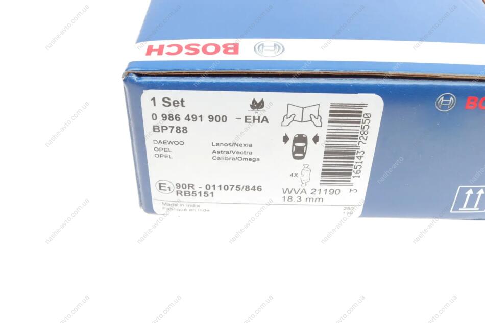 Комплект гальмівних колодок - дискові BOSCH 0 986 491 900