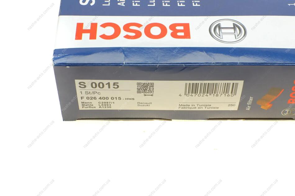 ПОВІТРЯНИЙ ФІЛЬТР BOSCH F 026 400 015