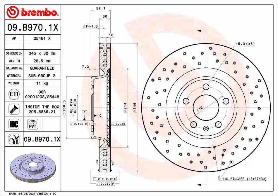 Гальмівний диск BREMBO 09.B970.1X