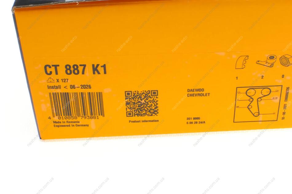 Ремкомплект ГРМ Ланос 1,6 /Нексия/Авео/Лачетти (ремінь + 2 ролика) Contitech CT887K1