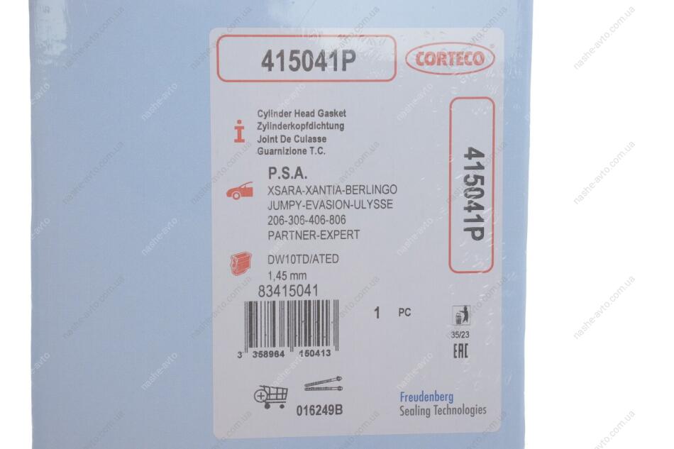 Прокладка головки блоку циліндрів CORTECO 415041P