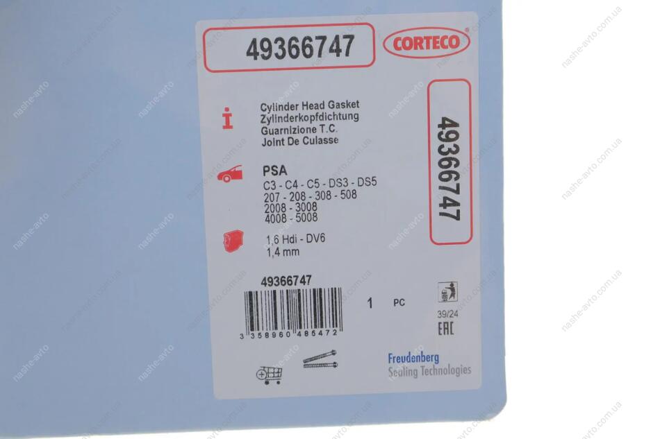 Прокладка головки блоку циліндрів CORTECO 49366747