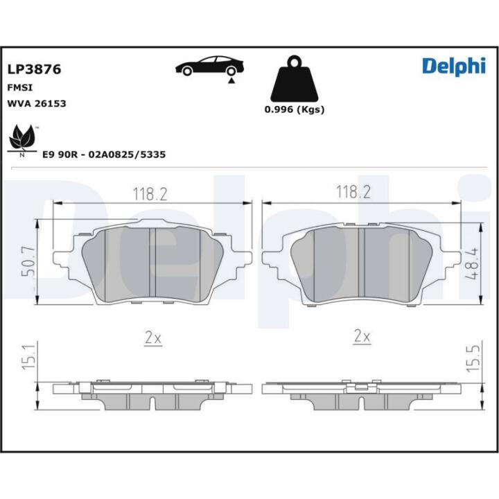 Комплект гальмівних колодок з 4 шт. дисків Delphi LP3876