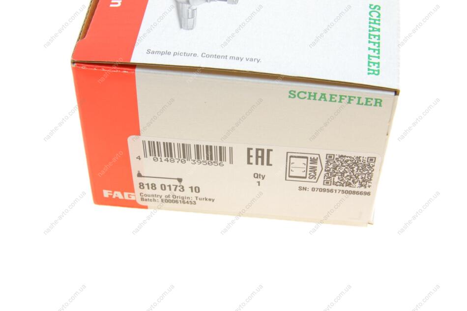 FAG — це один із провідних брендів у складі Schaeffler Group (Німеччина), що спеціалізується на виробництві підшипників коліс, ступиць, напрямних підшипників, підшипників КПП, вузлів підвіски та інших точних механічних компонентів для автомобільної промисловості.