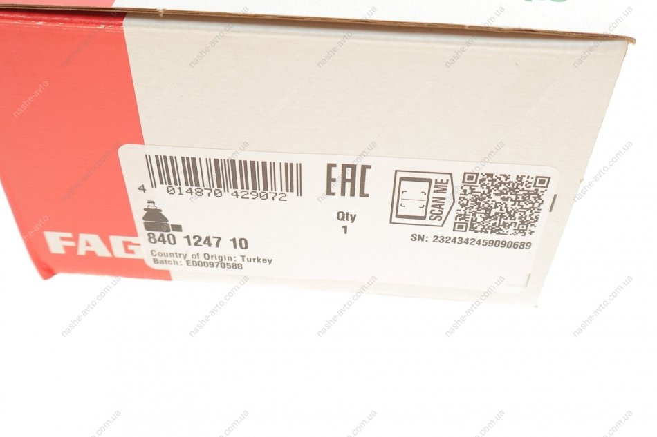 FAG — це один із провідних брендів у складі Schaeffler Group (Німеччина), що спеціалізується на виробництві підшипників коліс, ступиць, напрямних підшипників, підшипників КПП, вузлів підвіски та інших точних механічних компонентів для автомобільної промисловості.
