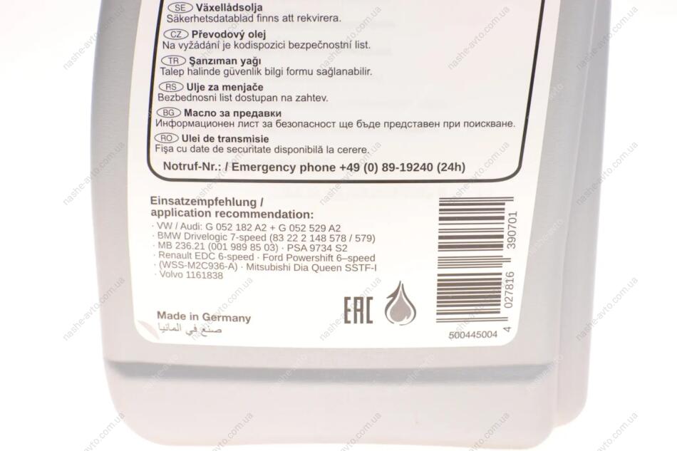 Додатковий артикул / додаткова інформація 2: з кількістю масла для стандартної заміни масла