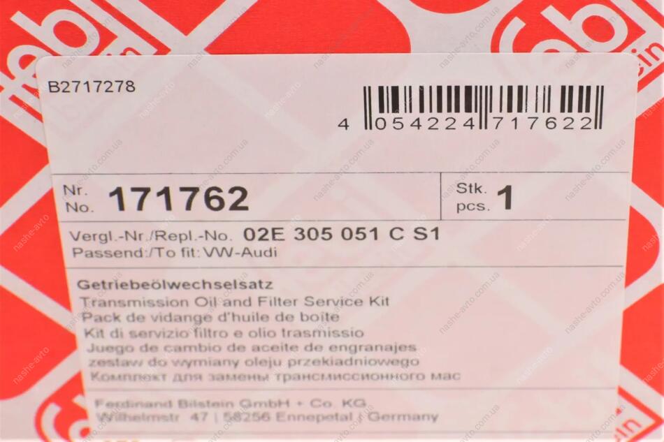 К-т сервісний АКПП(рідина для гідравл. передач 39070 6x1L + фільтр АКПП з прокладкою) FEBI BILSTEIN 171762
