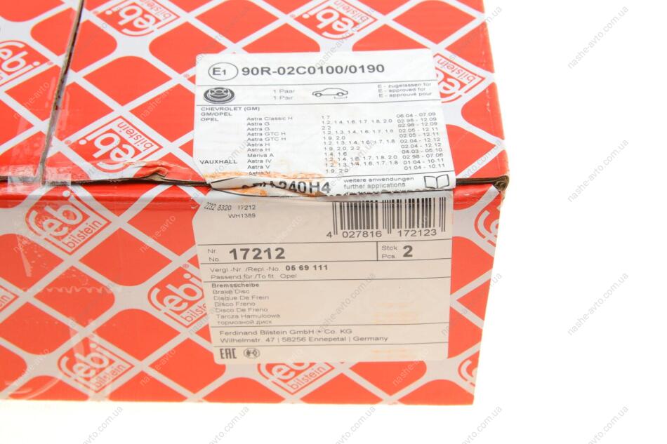 Диск гальмівний FEBI BILSTEIN 17212