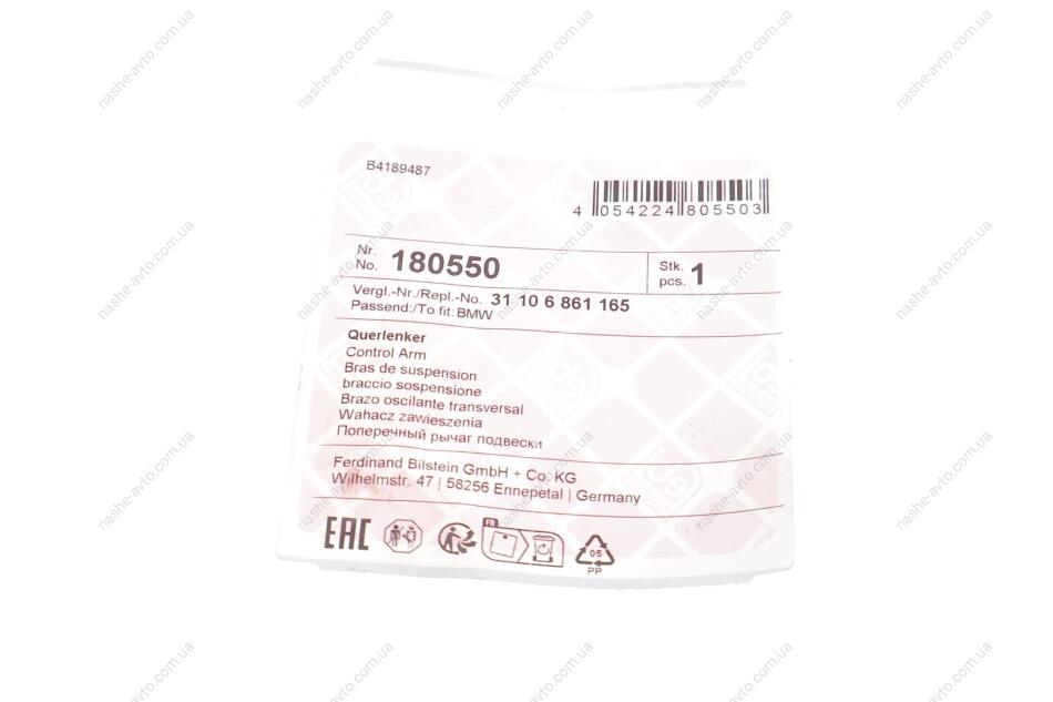 Важіль підвіски з сайлентблоком і кульовою опорою FEBI BILSTEIN 180550