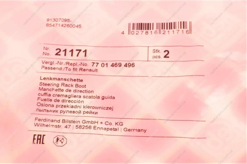 Пильник кермової рейки FEBI BILSTEIN 21171