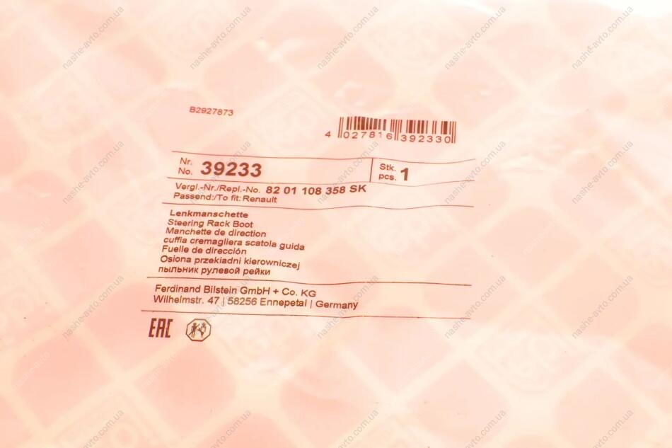 Пильник рейки рульової FEBI BILSTEIN 39233