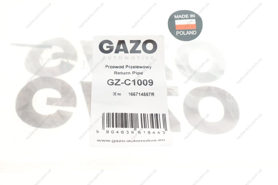 GAZO — провідний польський бренд, який спеціалізується на виробництві деталей для двигунів (включно з компонентами Common Rail: патрубками, прокладками, ремкомплектами форсунок тощо), а також елементами ходової частини, гальм, зчеплення та охолодження . Продукція бренду відзначається стабільною якістю, точною посадкою та чудовою сумісністю з автомобілями європейського та світового автопарку.