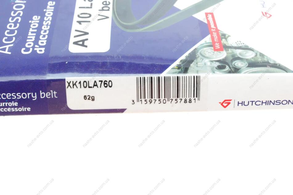 Ремінь генератора (клиновий) HUTCHINSON AV 10 LA 760