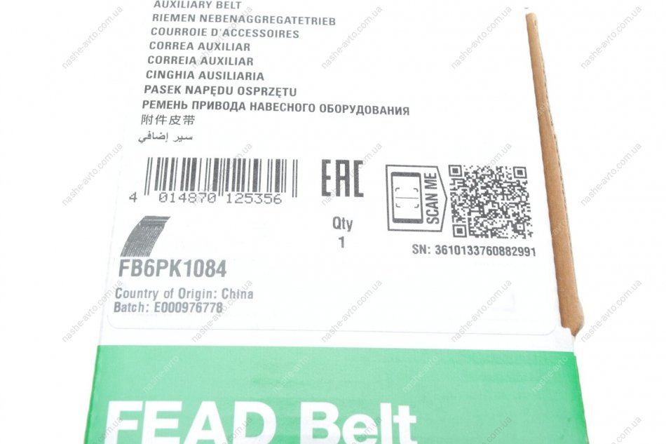 Ремінь генератора поліклиновий INA FB 6PK1084