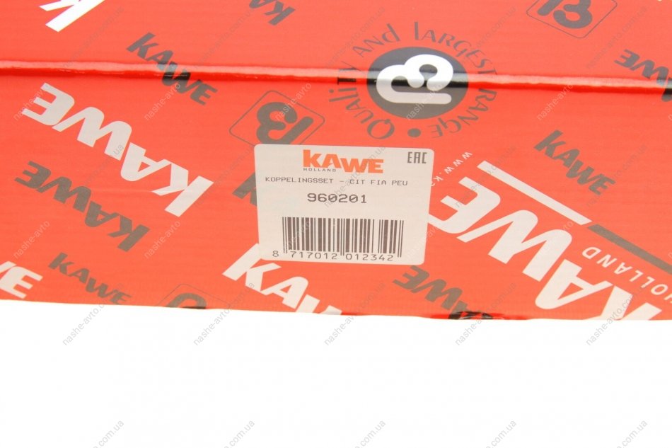 Kawe — нідерландський бренд, що спеціалізується на виробництві компонентів зчеплення для легкових і комерційних автомобілів. В асортименті — кошики, диски зчеплення, вижимні підшипники та комплектуючі. Продукція Kawe відома якісною збіркою та стабільною роботою в умовах інтенсивної експлуатації.