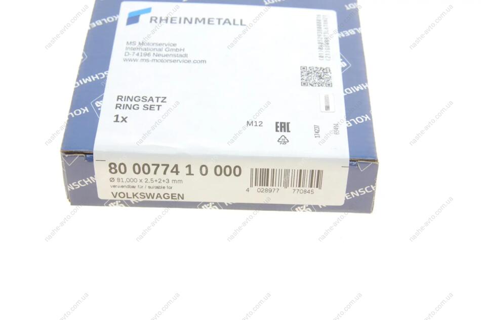 Кільця поршневі KOLBENSCHMIDT 800077410000