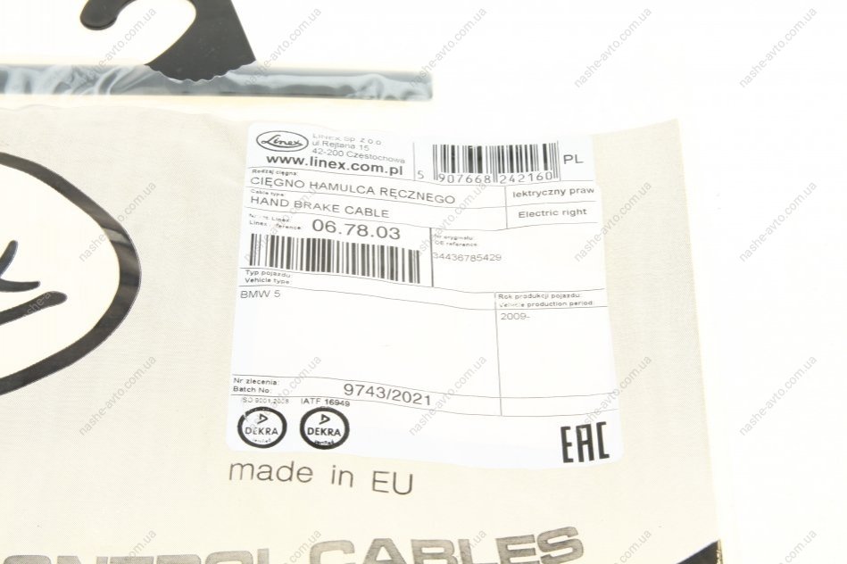 LINEX — польський бренд, що спеціалізується на виробництві тросів зчеплення, газу, ручного гальма, капота, багажника та інших елементів управління. Компанія понад 50 років представлена на ринку автозапчастин і має репутацію виробника якісної продукції для авто європейського, азійського та американського виробництва. Продукція LINEX вирізняється точністю виготовлення, стійкістю до зношування та широким асортиментом.
