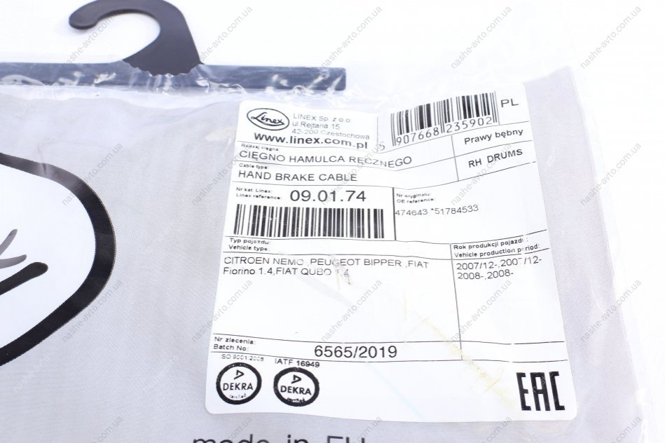 Трос ручного гальма LINEX 09.01.74