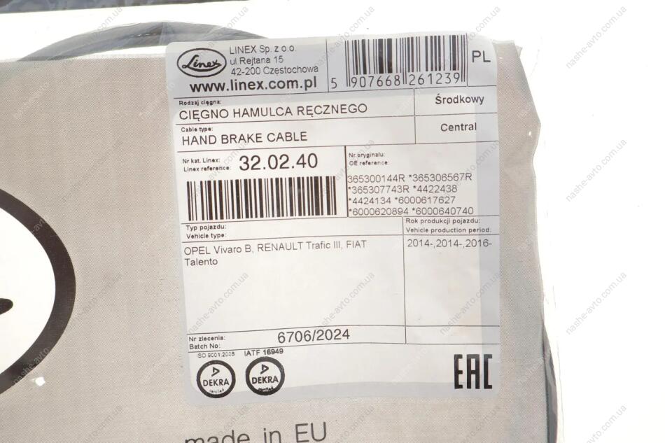 LINEX — польський бренд, що спеціалізується на виробництві тросів зчеплення, газу, ручного гальма, капота, багажника та інших елементів управління. Компанія понад 50 років представлена на ринку автозапчастин і має репутацію виробника якісної продукції для авто європейського, азійського та американського виробництва. Продукція LINEX вирізняється точністю виготовлення, стійкістю до зношування та широким асортиментом.