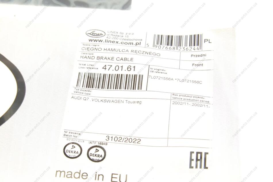 LINEX — польський бренд, що спеціалізується на виробництві тросів зчеплення, газу, ручного гальма, капота, багажника та інших елементів управління. Компанія понад 50 років представлена на ринку автозапчастин і має репутацію виробника якісної продукції для авто європейського, азійського та американського виробництва. Продукція LINEX вирізняється точністю виготовлення, стійкістю до зношування та широким асортиментом.